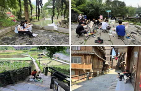 本次专业写生实践教学以“行走的课程思政”为主题,对三条线路的人文历史、传统建筑、环境景观、风土人情等方面进行实地现场写生。两周的外出专业写生实践教学,不仅将课堂从室内转移到户外的自然环境中,更重要的是,它促进了员工之间的团队合作,并且在课程实训中锻炼了他们的社会认知能力和意志力,从而全面提高了他们的综合素质。