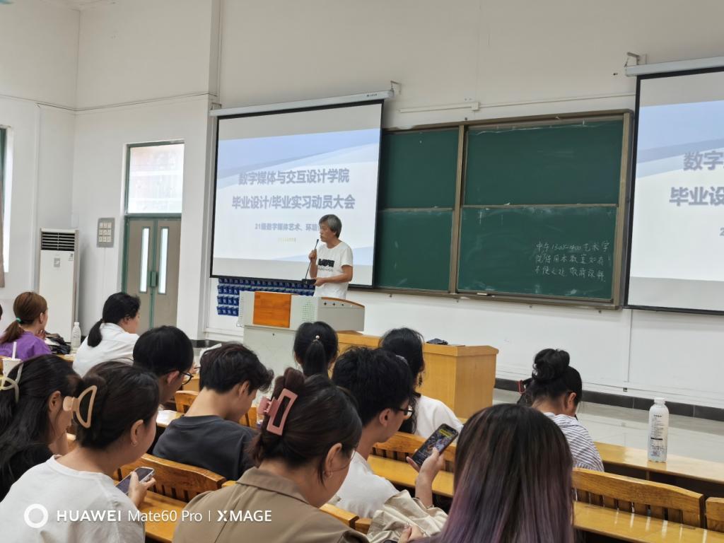 装饰艺术系主任李沁茹为同学们详细解读了毕业论文(设计)的流程规定和基本要求,并再次强调了毕业设计的重要性以及各个关键时间节点,并对一些特殊情况进行了阐释。