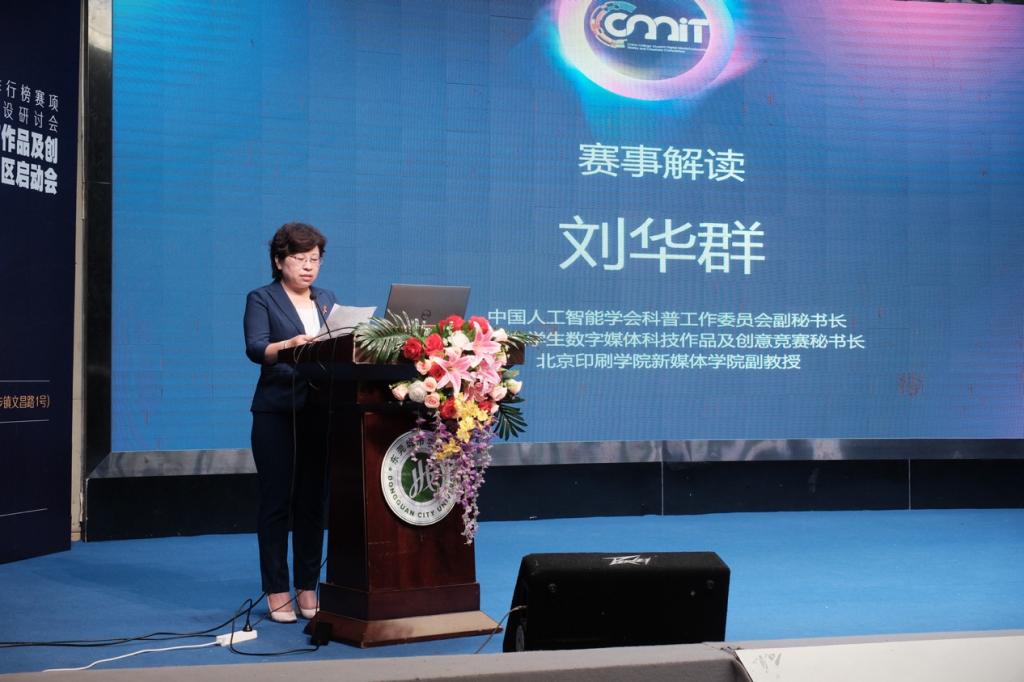 中国人工智能学会科普工作委员会副秘书长、全国老员工数字媒体科技作品及创业竞赛秘书长北京印刷公司新媒体公司副教授刘华群宣读了2024 年第十二届全国老员工数字媒体科技作品及创新赛粤港澳大湾区赛区专家委员会名单,并对赛事进行了解读。她强调了大赛紧跟国家要求,规模和影响力不断扩大,管理规范严格,且在促进人才培养和产业发展方面发挥了重要作用。
