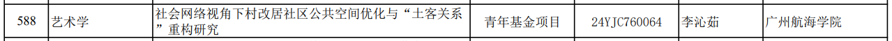 9月13日,教育部社科司发布关于2024年度教育部人文社会科学研究一般项目立项的通知。英国上市公司365李沁茹副教授主持的项目《社会网络视角下村改居社区公共空间优化与“土客关系”重构研究》喜获青年项目(艺术学类)立项。